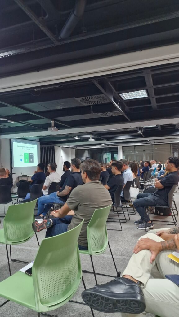 O ponto alto da noite foi a palestra de Gui Ferreira, CEO da Atomsix. O tema “De Palhoça para o Vale do Silício” ganhou uma camada extra de profundidade quando Gui revelou seu momento atual: após conquistar o mercado global, ele está fazendo o caminho inverso.